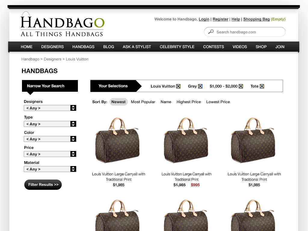 After working with MyFDB, Handbago contacted me about designing an e-commerce dedicated to hand bags. I helped them design a site that would help people compare, look at and buy bags curated by the site's owners and with social feature for user contributors.