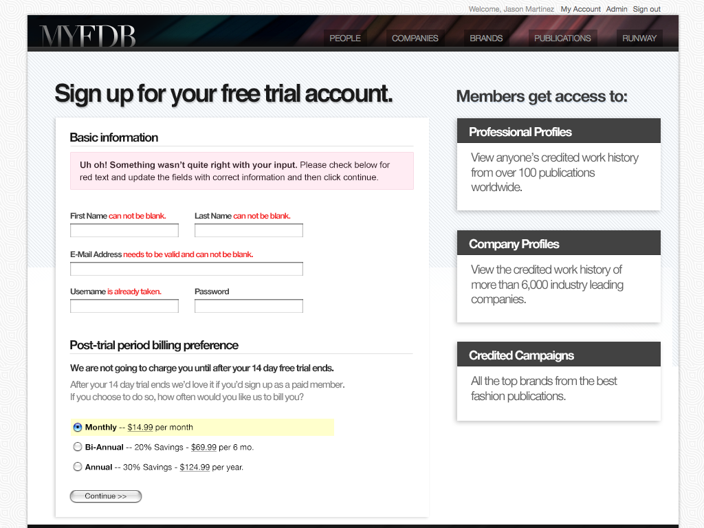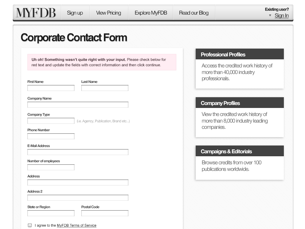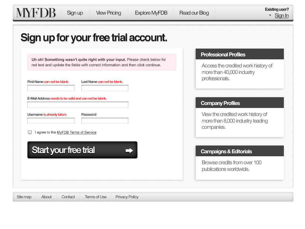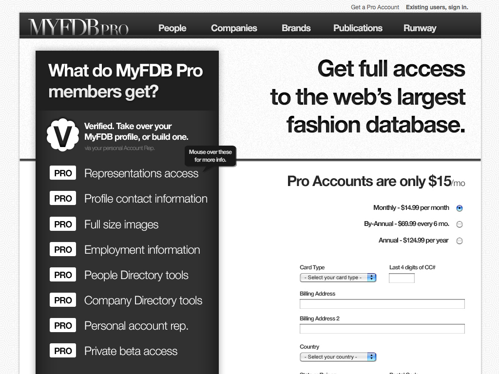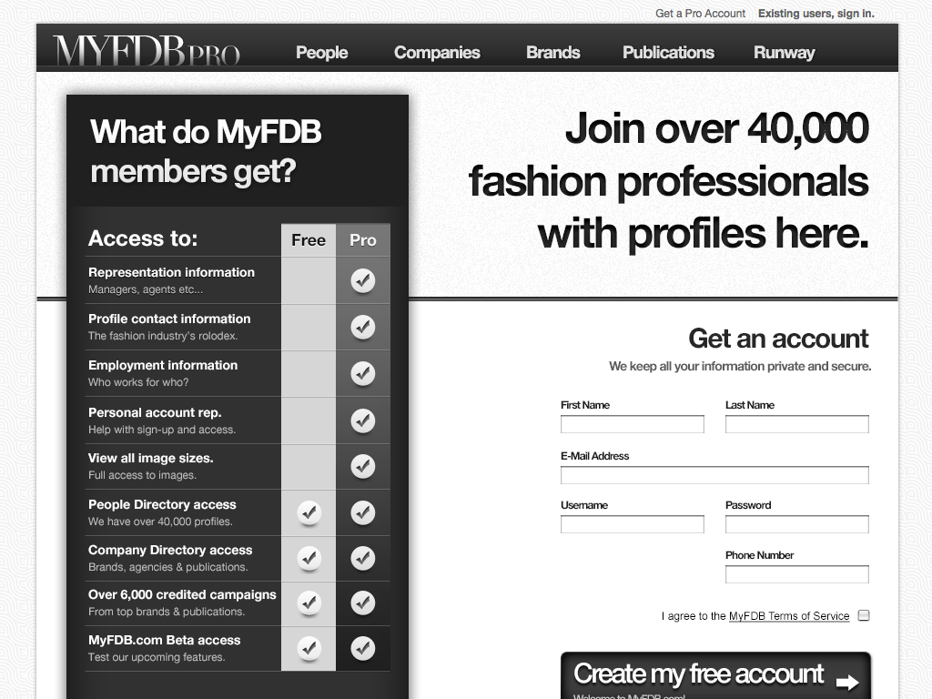 The second major version of MyFDB.com. I lead design and development through a major re-write and redesign adding a verification funnel similar to how Twitter operates their identification verification process and deeply integrated analytics that proved very useful for new sales/leads.
